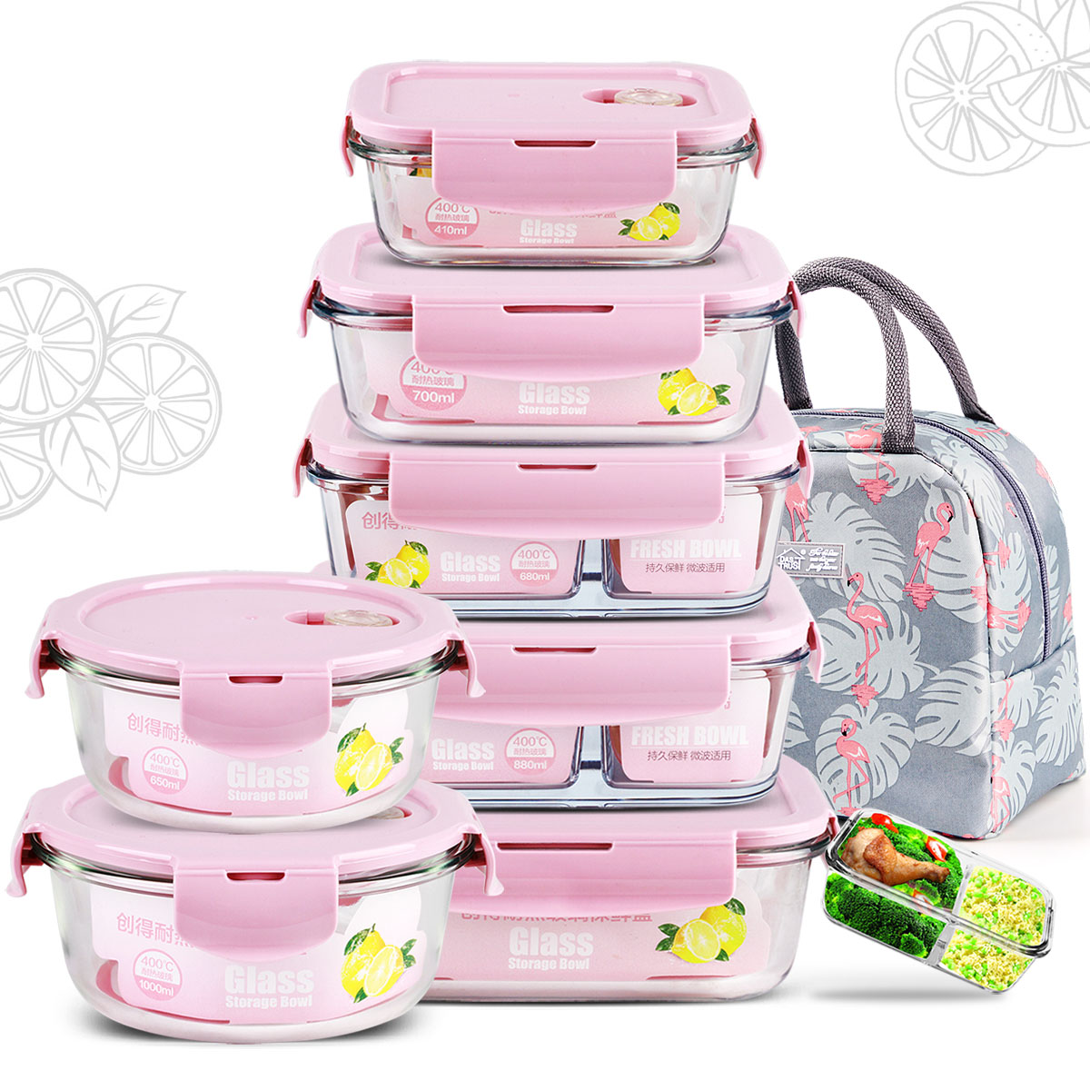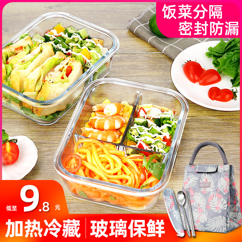 Office workers glass lunch box Microwave oven heating special refrigerator Fresh separation sealed fruit lunch box with lid bowl