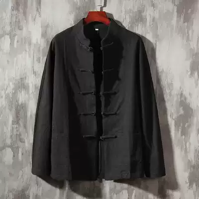 Chinese style men's cotton linen shirt stand collar men's retro style shirt spring and autumn Chinese loose linen long sleeve shirt