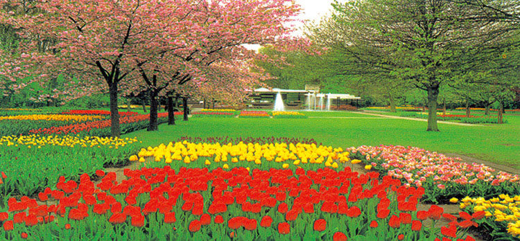 Landscape, landscape, waterfall, no glue, modern decorative painting two-piece oversized 106*230CM flower, grass and tree park