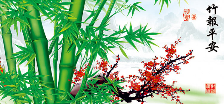 Landscape and landscape without adhesive modern decorative painting two-piece super-large 106*230CM bamboo newspaper safe