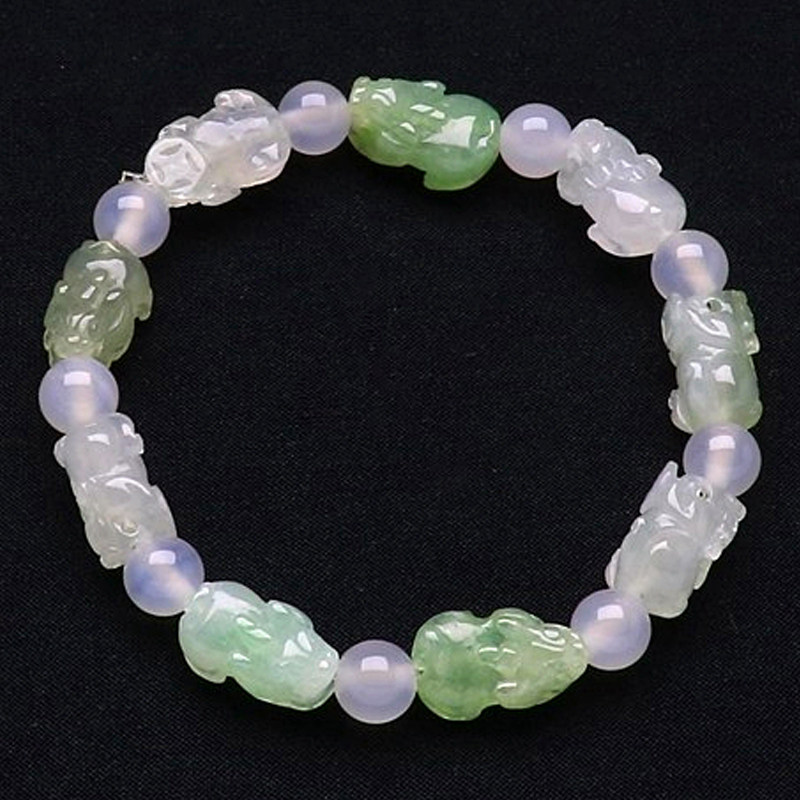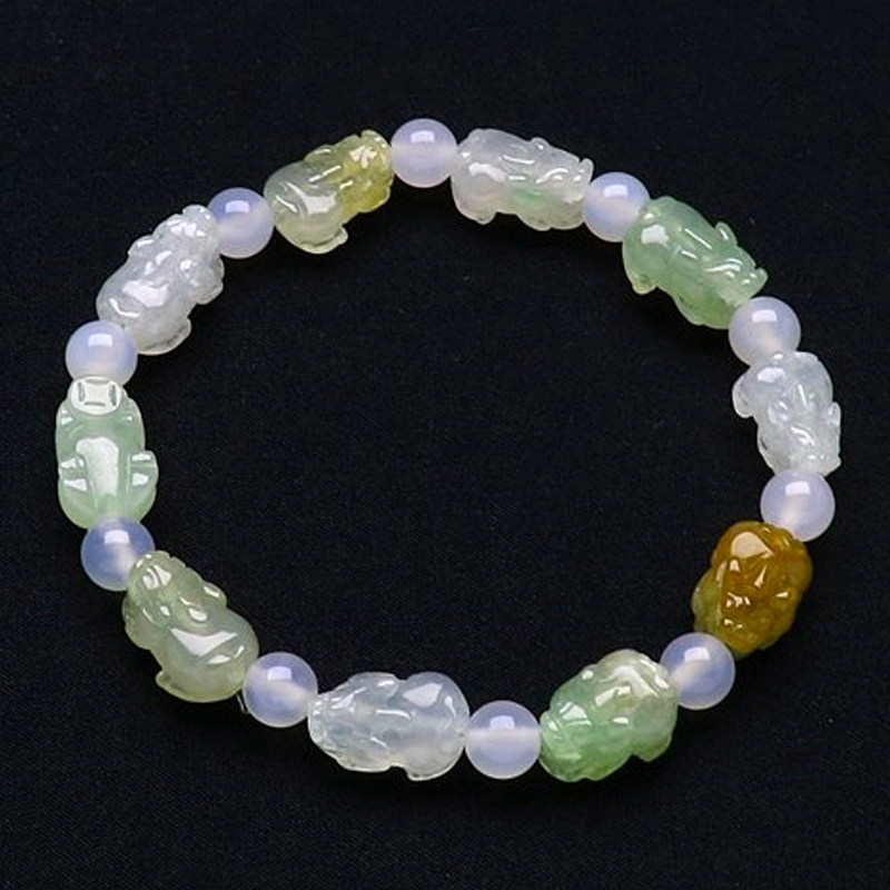 Natural jade A goods ice species Pixiu beads hand chain Yellow jade violet Yang green jade hand chain hand string with certificate