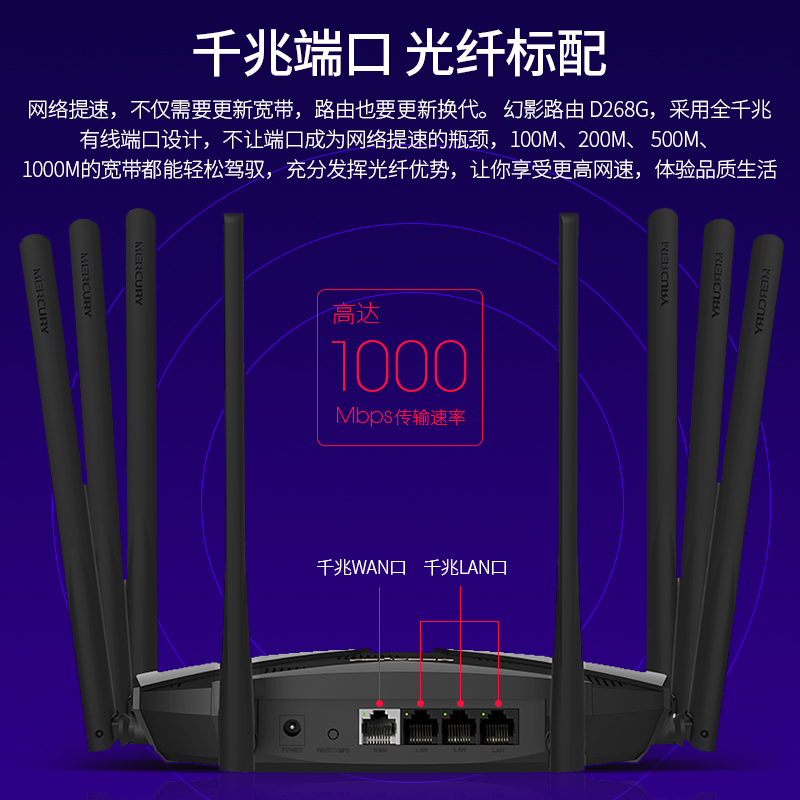 Mercury D268G 2600M full Gigabit port 8 antenna dual band new router Wireless home through the wall high speed wif dual gigabit stable 5G technology Fiber optic signal Intelligent large ping