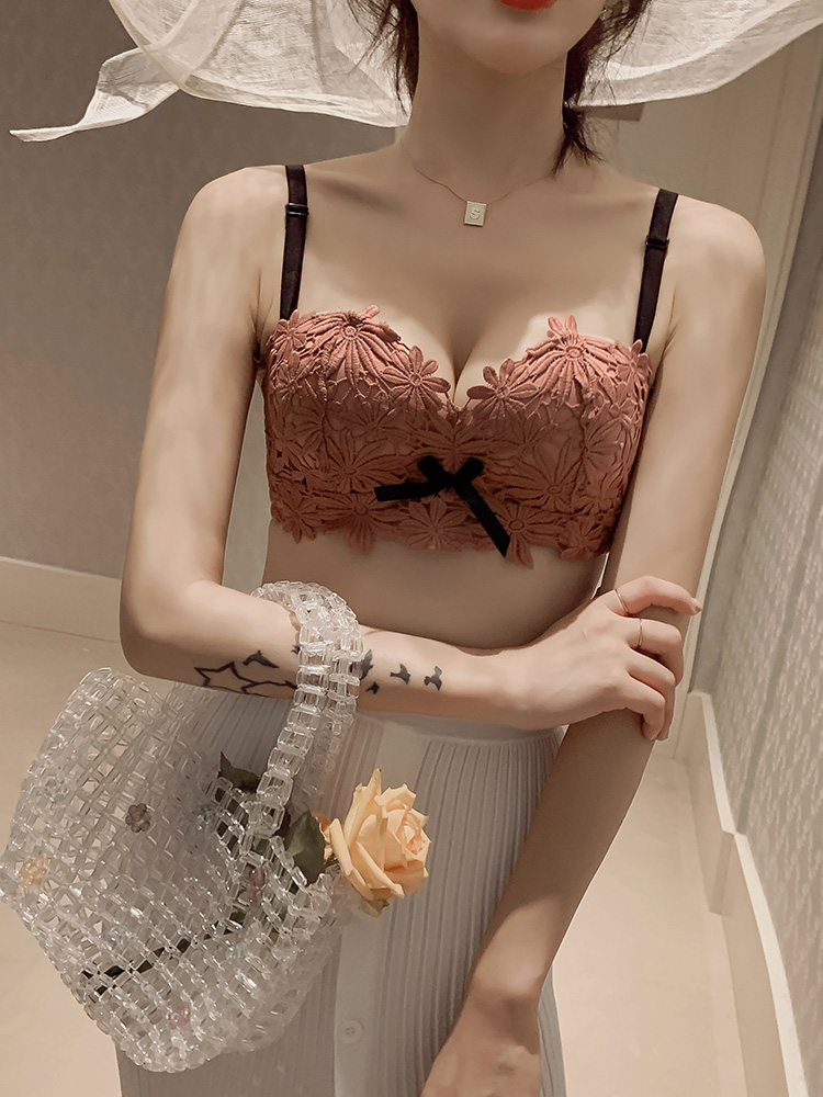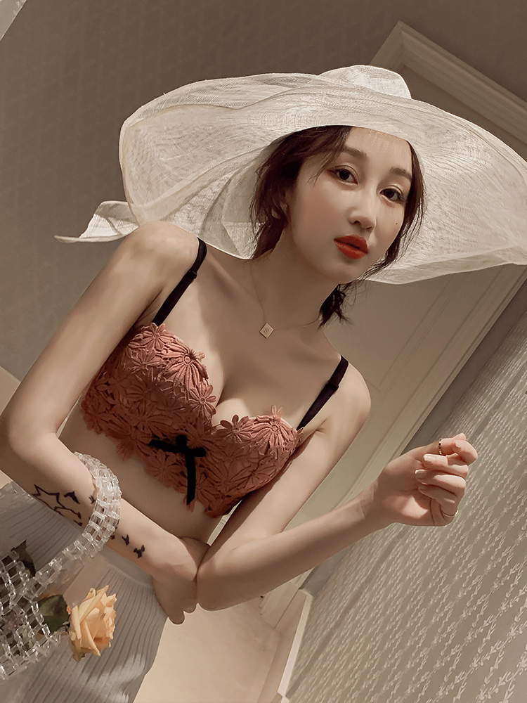 Underwear Feminists No steel ring to woo small breasts Lace Flowers Sexy Bra Suit Adjustment Type Breathable Underwear Thin