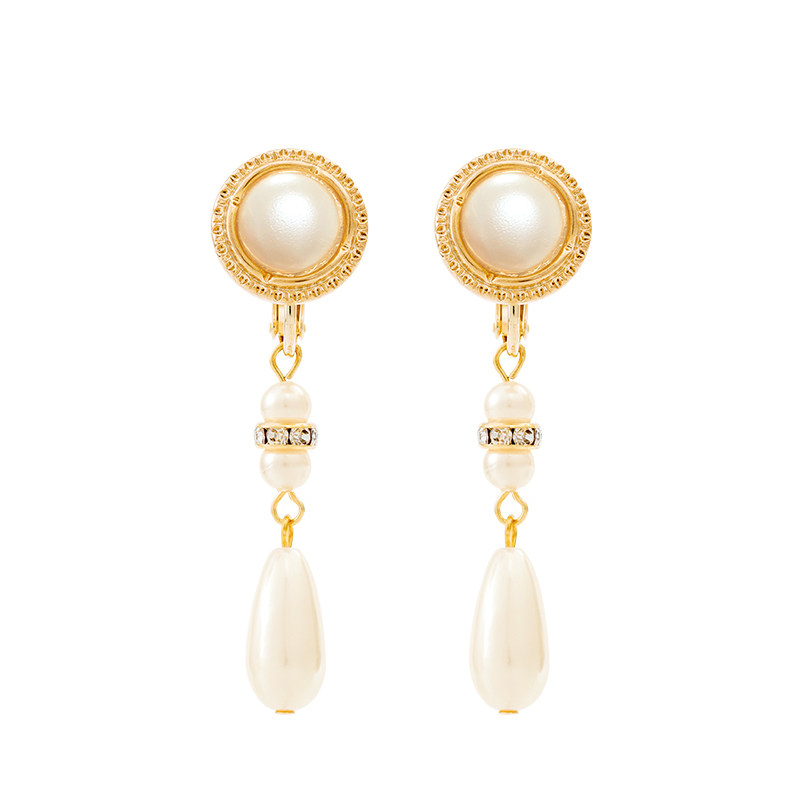 osewaya earclip without earbuts female temperament pearl earrings retro superior sense long version eardrop minimalist earrings