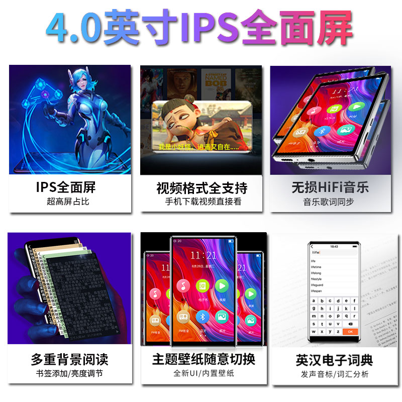 40 inch full screen Bluetooth mp4 walkman Student touch screen mp3 English listening mp5 player external