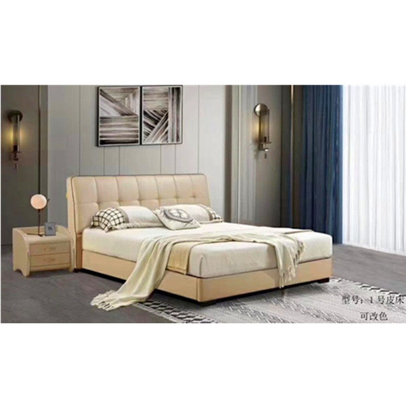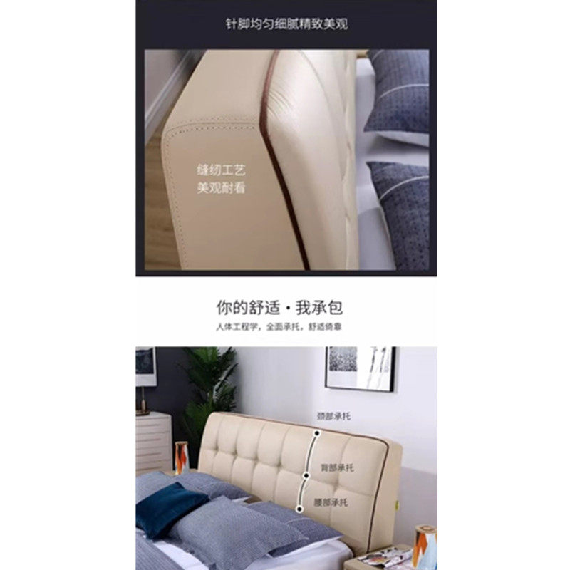 Fu brand leather bed simple modern soft bed master bedroom double bed top layer real cowhide bed row skeleton wedding bed No. 1