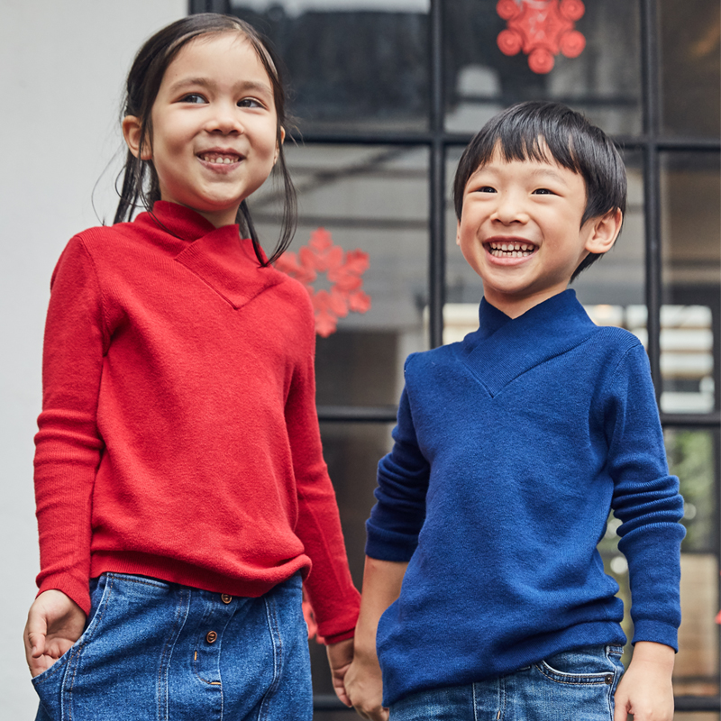 UzMz cross-Collar Cotton soft glutinous base shirt inside high collar parent-child Hanfu sweater Chinese style New Year dress