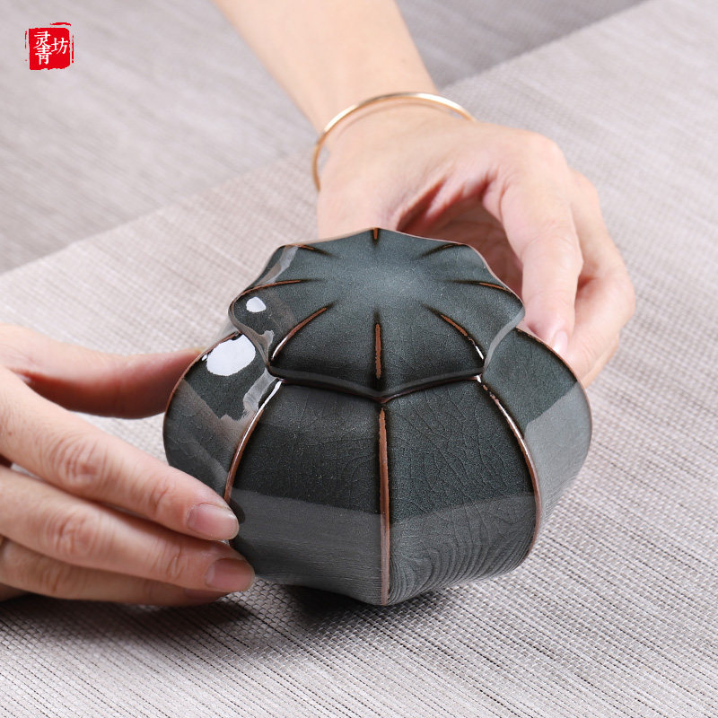 Ceramic handmade tea tank sealed tank Koun fetal ice crack ceramic moisture proof Pu-yu tea storage tank wake tea cans