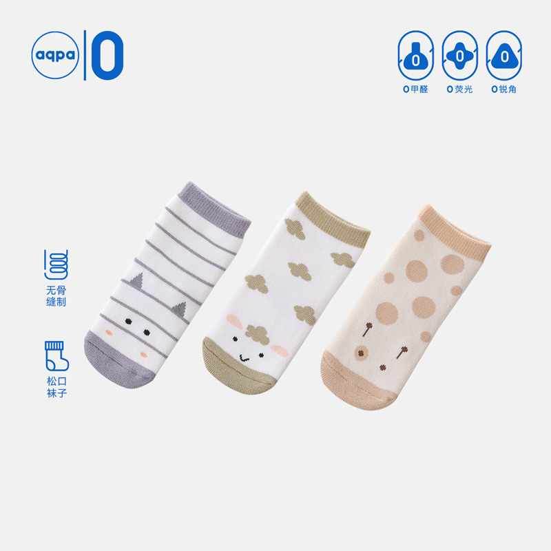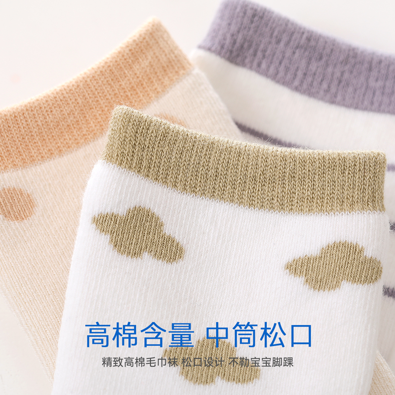 aqpa three pairs of baby towel socks winter new men and women baby mid-tube socks thickened newborn warm socks