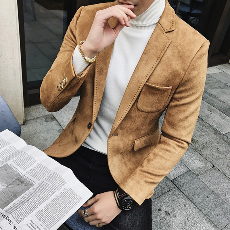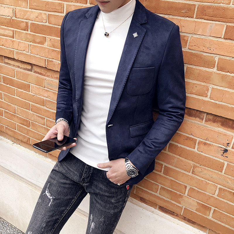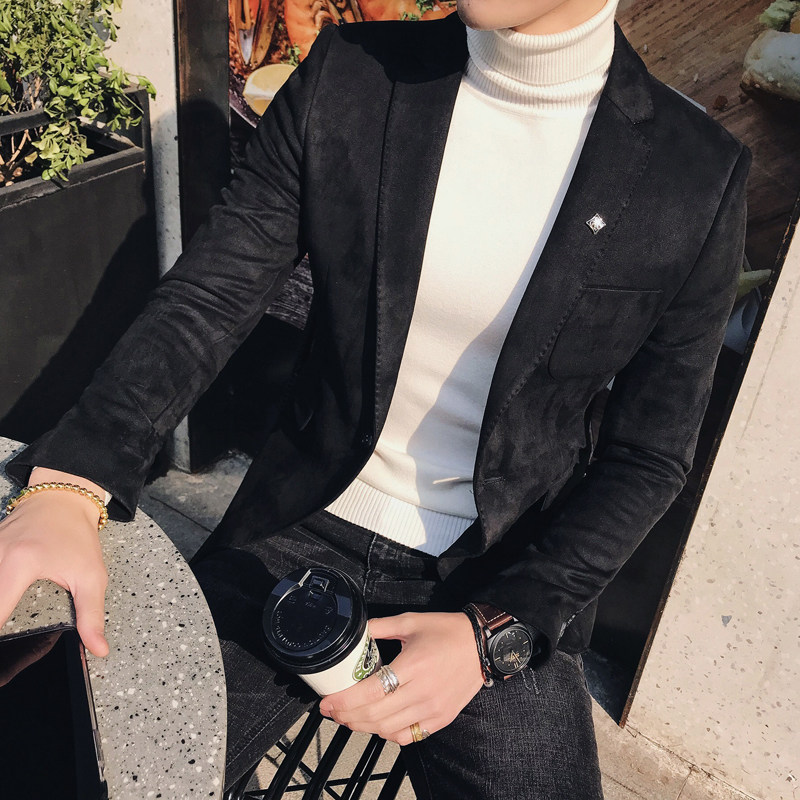 Winter suede suit jacket men's Korean version of the trend slim-fit handsome casual small suit men's temperament top trend