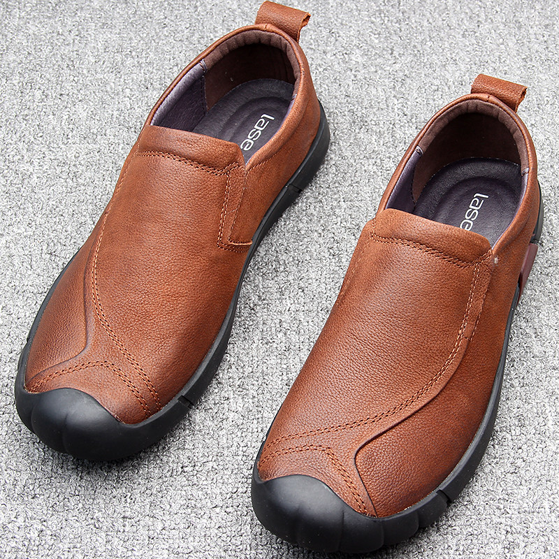 Foreign trade Driving shoes men genuine leather One foot pedal soft-bottom men casual leather shoes Men's Inn wide footed 100 lap breathable fall