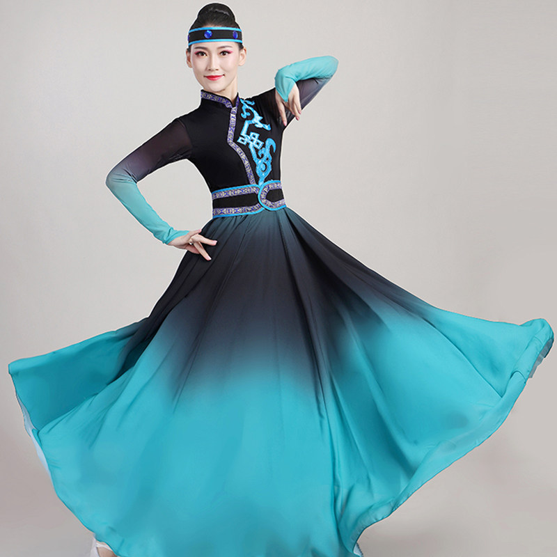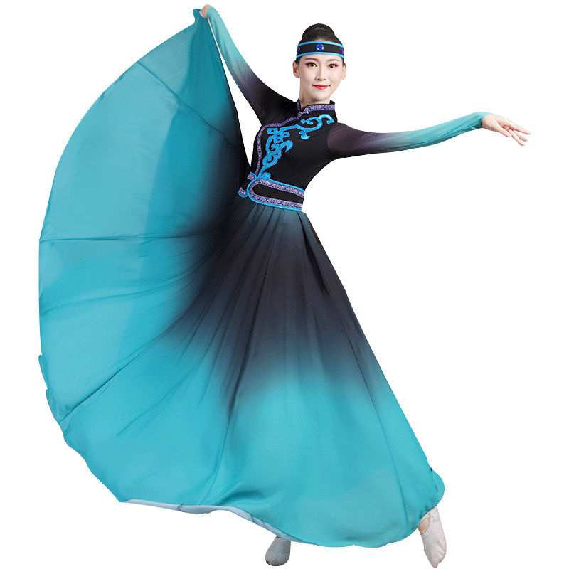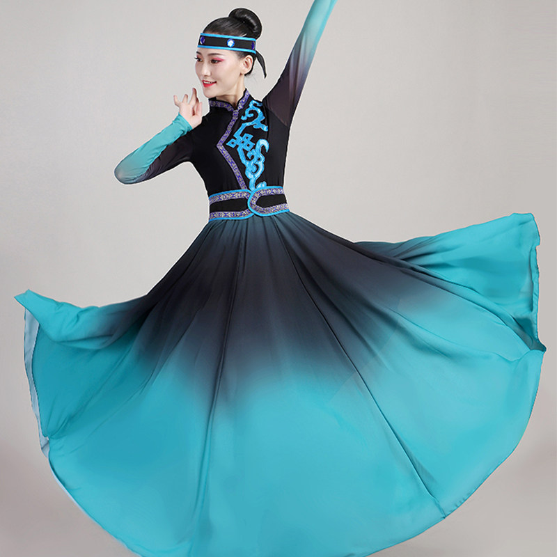 Xinjiang dance performance clothing adult female art test ethnic dance clothing Mongolian conjoined opening dance big swing skirt long section