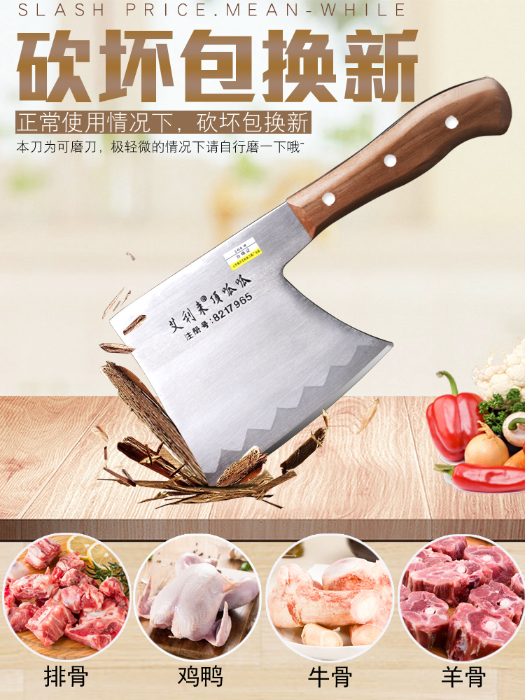 Axe chopping knife hand-forged butcher chop knife professional chopping axe commercial shell steel knife kitchen knife chop bone axe