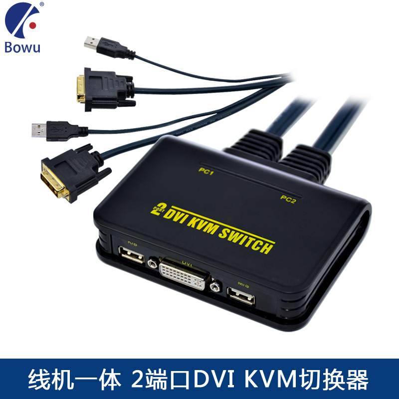BOWU DVI KVM switch with cable automatic 2 in one out 2 DVI2 in 1 out 2 ports Two computer DVRs share a set of keyboard and mouse monitors