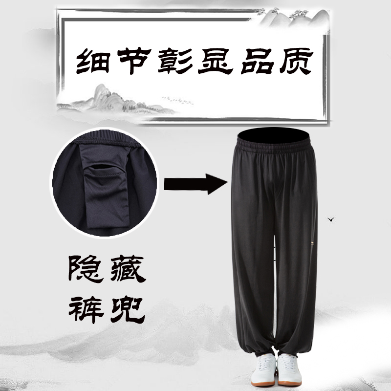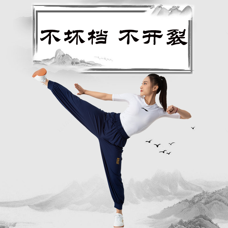 Li Ning tai chi pants women's stretch tai chi training pants men's spring and summer solid color milk silk loose morning training pants