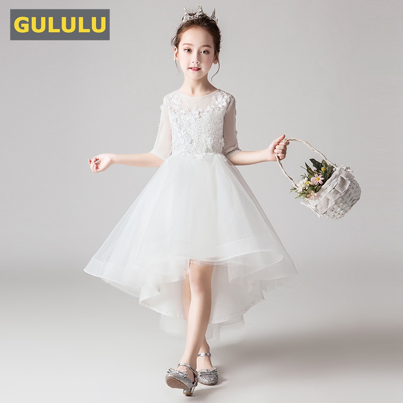Girl's fluffy crewy dress Summer flower dresses wedding dresses Children's dress Dress Foreign Pie for tug-tail Princess Lieven