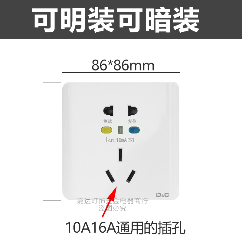 Delixi 10A16A leakage protection switch socket 86 type five-hole panel air conditioning water heater overload protector