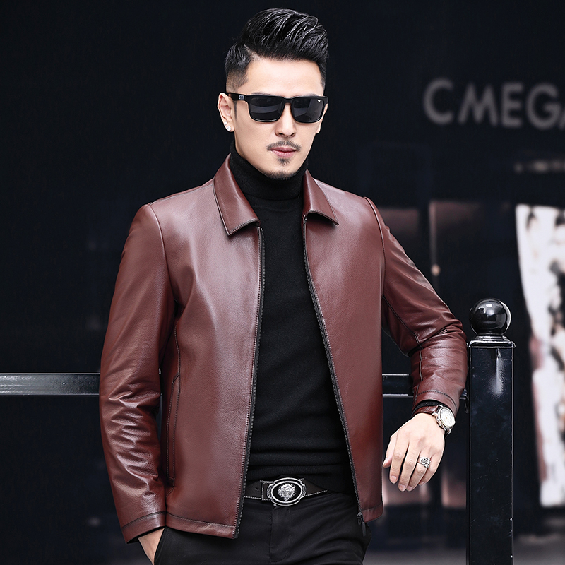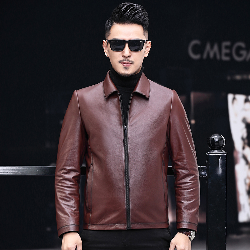 New genuine leather leather clothes men's locomotive clothes headlined cow leather jacket down jacket for men's short and handsome gas-wave spring and autumn jacket