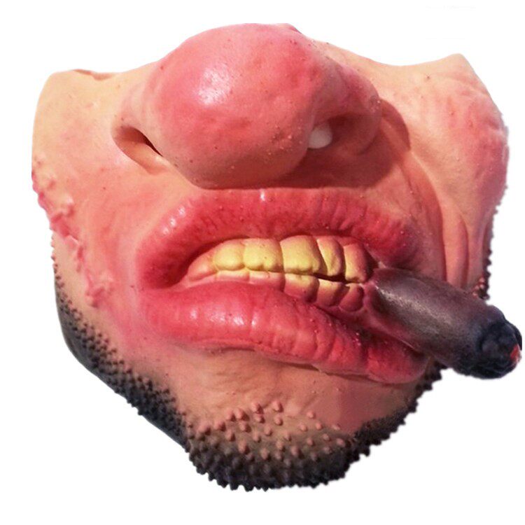 Smoking pig mouth red lip kiss big die flower moustache wolf dog big nose runny nose old woman
