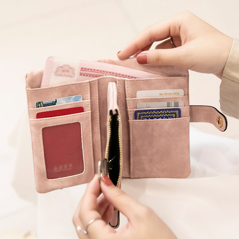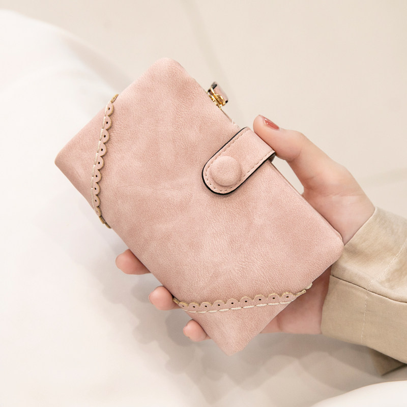 Rice printing edge frosted short wallet female 2021 new Korean version of the student cute coin purse multi-function wallet female