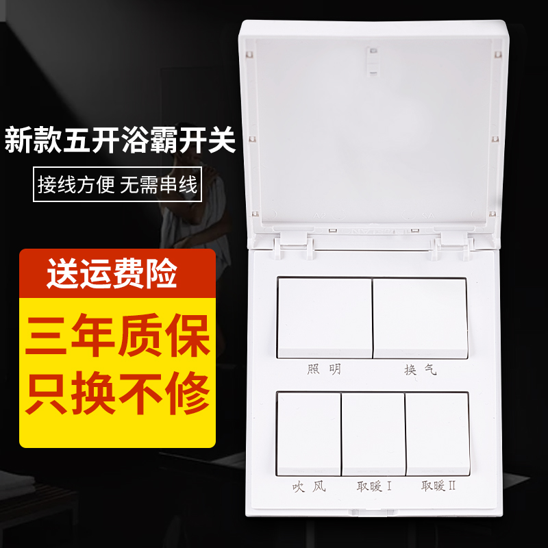 OPPLE lighting bath master switch universal five open 86 type five-in-one with cover panel air heating toilet bathroom waterproof