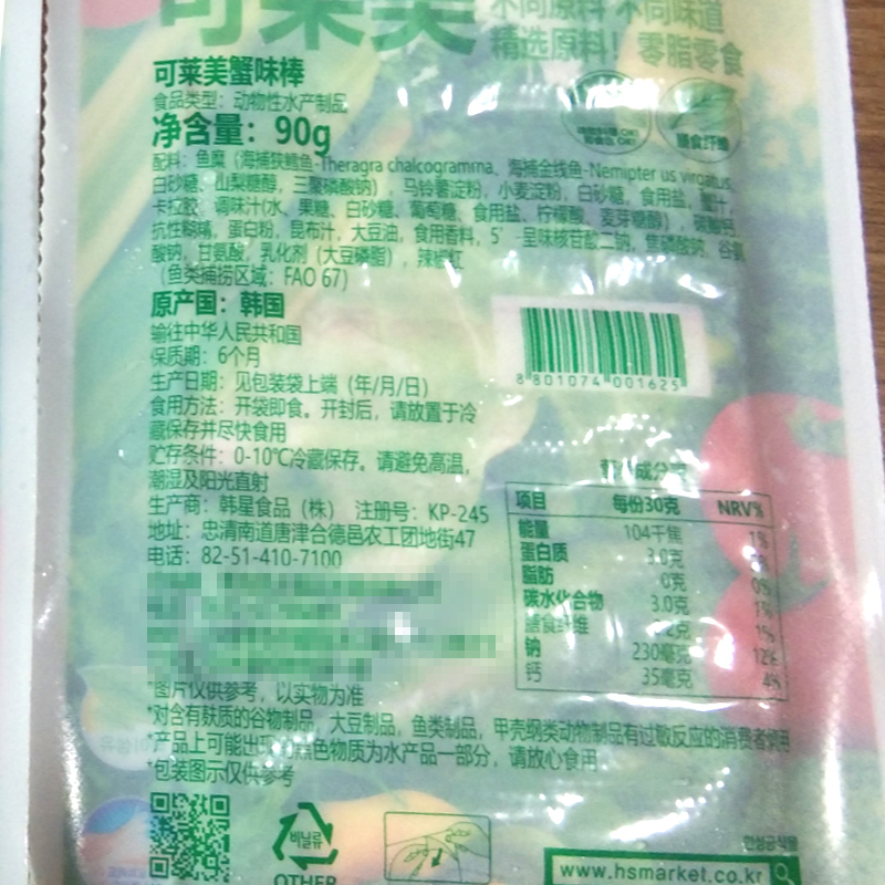 South Korea imported crab meat stick Japanese crab stick hand torn crab willow can not breathe crab foot stick low fat net red instant snack