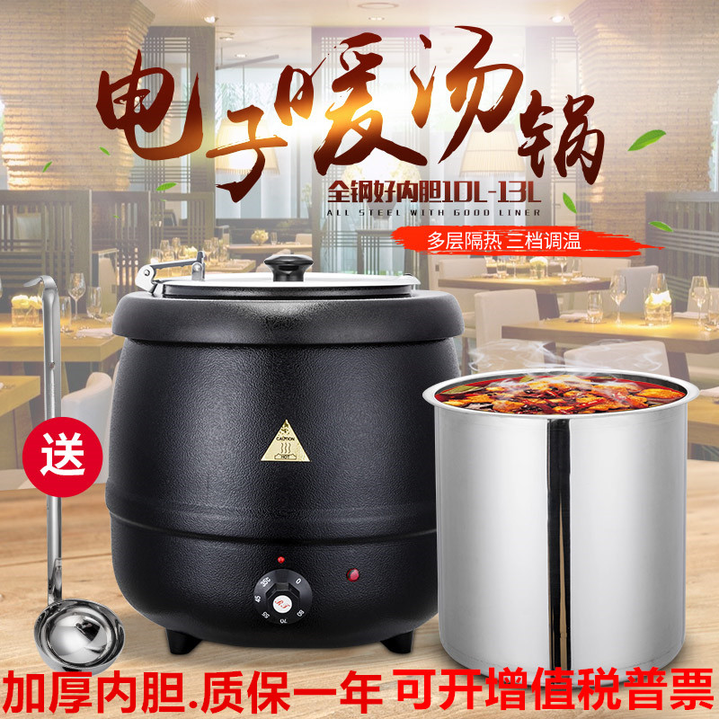 10 Liters Warm Soup Saucepan Electronic Insulation Pan Commercial Stainless Steel Electric Heating Warm Pot Hotel Self-service Dining Room Porridge Soup Saucepan