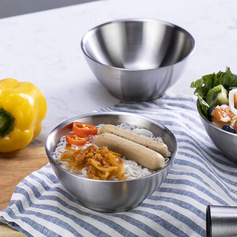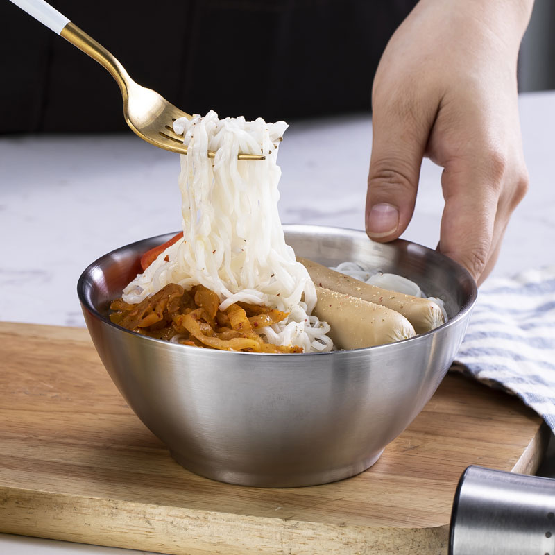 304 stainless steel bowl Household plus size adult single child baby anti-scalding and anti-falling double layer eating bowl iron bowl