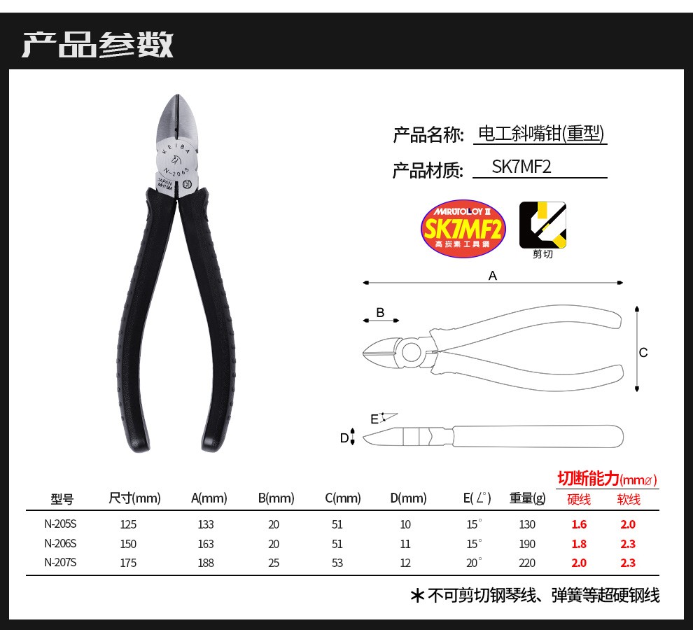 N-206SN-207ST-308S 8 inch sharp mouth pliers MN-A04M-615N-205S 5 inch diagonal fitter