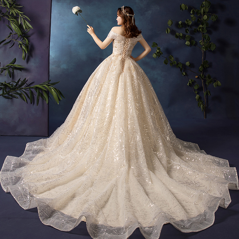 Large size wedding dress gown 2022 new bride fat person mm sister 200 catty 300 grams of slim one-shoulder luxurious woman