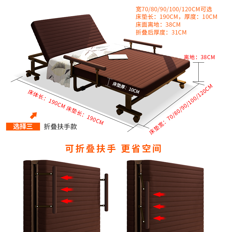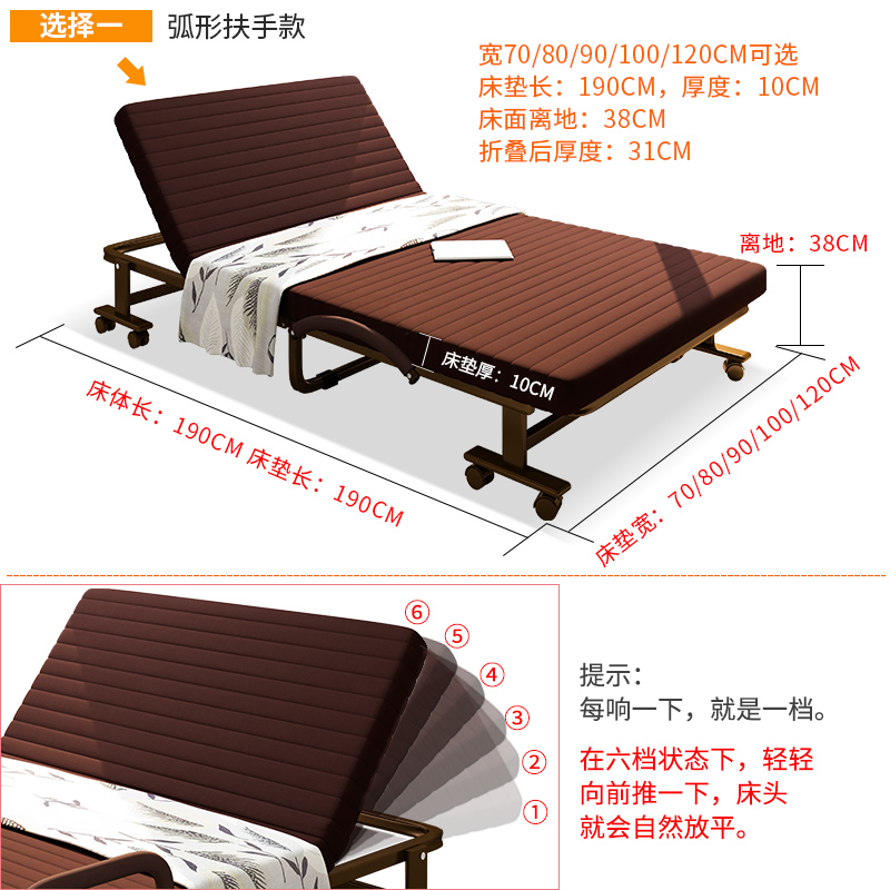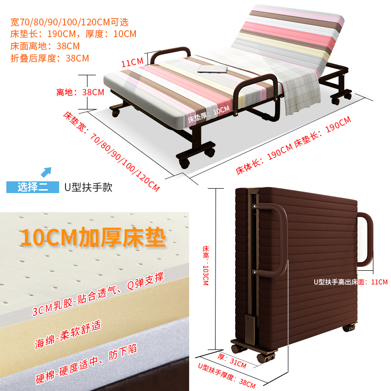 Folding bed Lunch break nap Single bed Latex 1 2 meters double office duty simple adult escort free installation