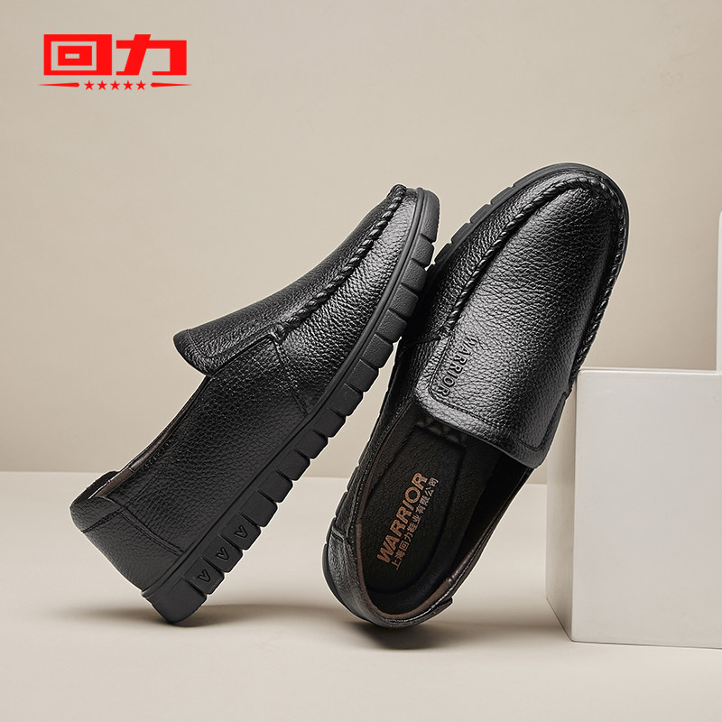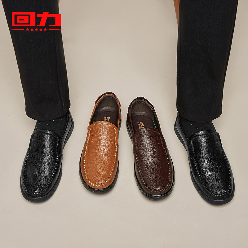 Pull back leather shoes men's autumn men's casual leather shoes middle-aged one pedal flat bottom breathable soft bottom comfortable dad shoes