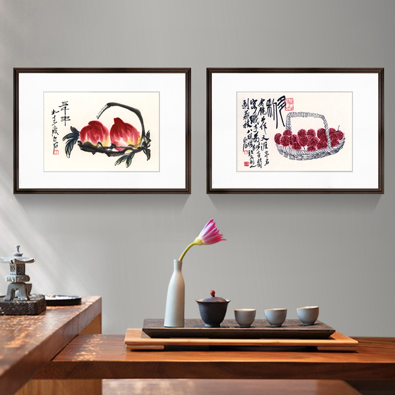 New Chinese restaurant decorative painting fruit mural background wall Modern living room hanging painting Qi Baishi Shoutao Chinese painting Dining room