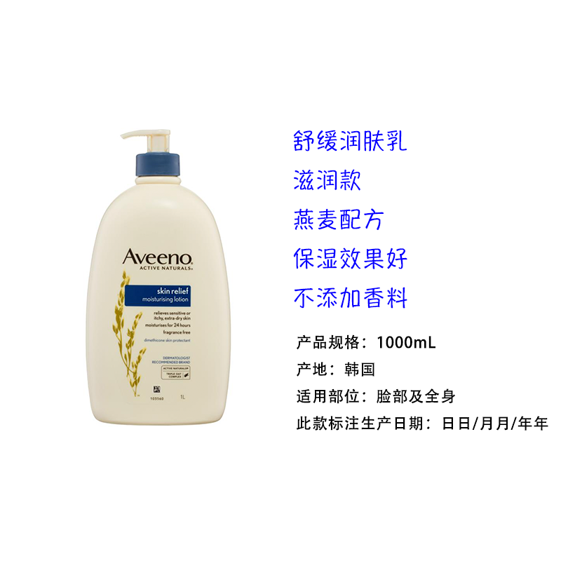 Australia aveeno Aiwei Nuo soothing body lotion moisturizing milk large-capacity body lotion 1L