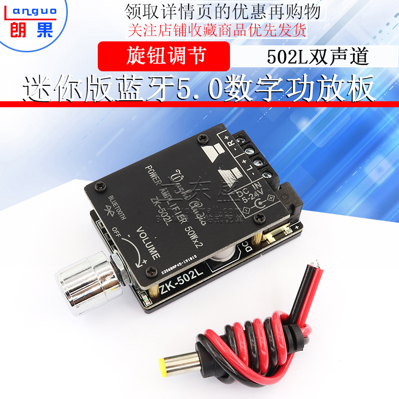 Mini version 20W30W40W50WX2 Bluetooth 5 0 digital power amplifier board knob to adjust the volume with switch 502L