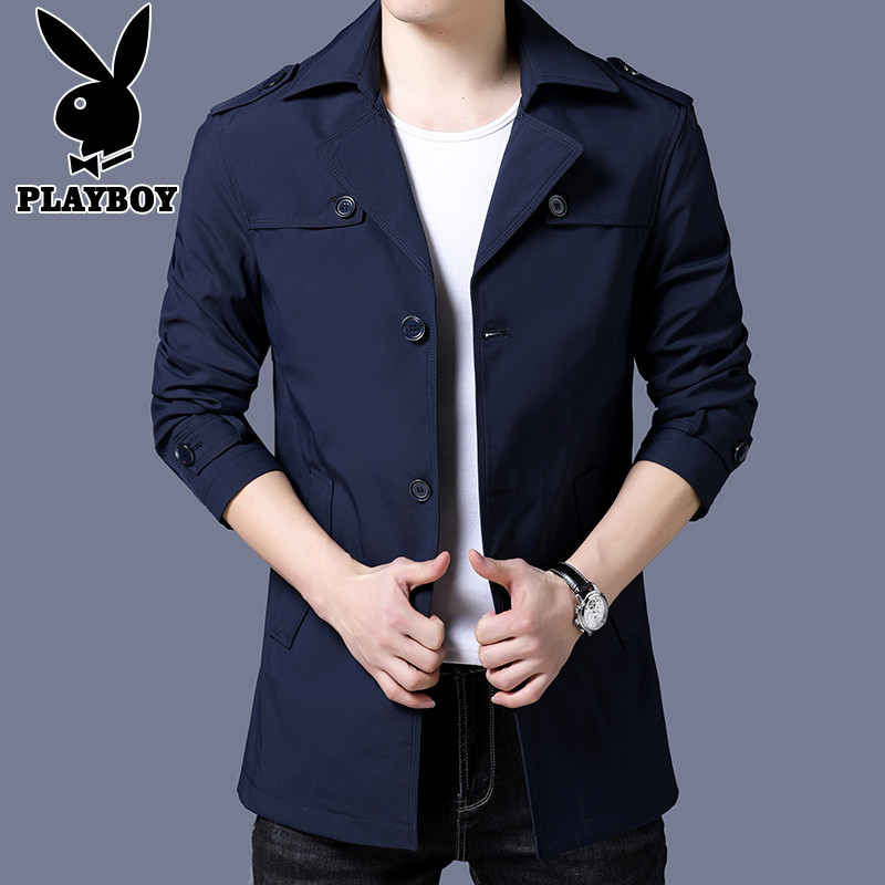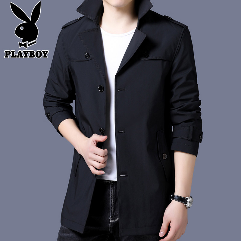 Playboy trench coat men's mid-length edition coat Spring and Autumn Season Korean edition trend handsome casual cape coat menswear