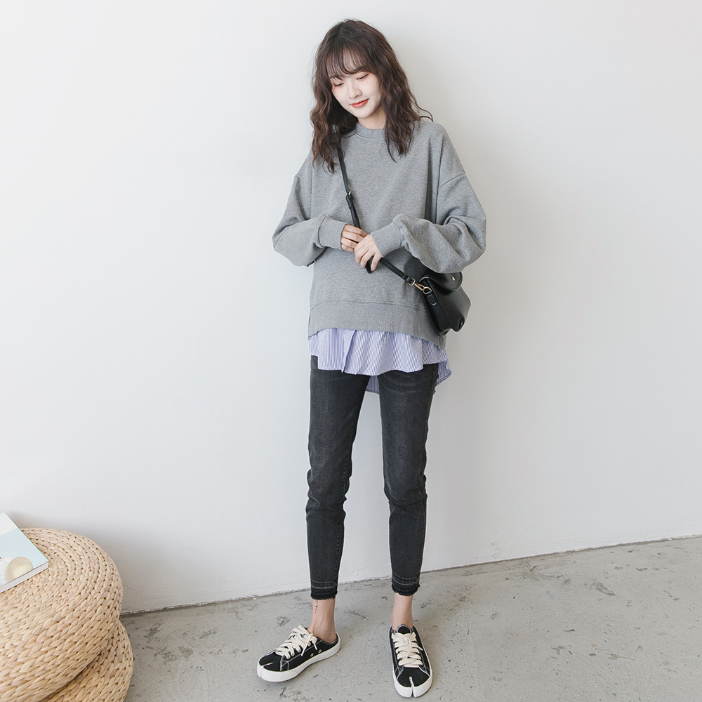 Pregnant woman Autumn Fashion Fashion suit Korean version Leisure large size Loose Blouse long sleeves Long Stripes Fake Two necropolis