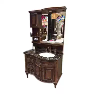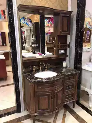 European-style bathroom cabinet Red oak powder room American washstand Solid wood antique bath cabinet hand wash basin cabinet combination