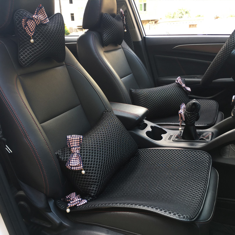 Car headrest car pillow waist support neck pillow net red style cute bow simple net red style car pillow pair