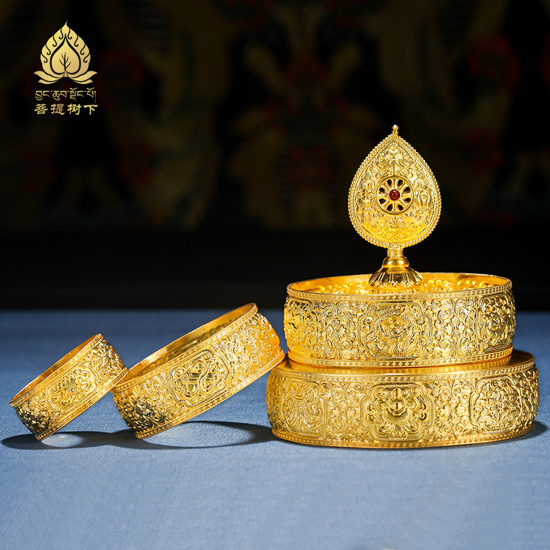 Pure silver Manza disc Tibetan Buddhism S999 foot silver plated 24k gold Man tea Roof gold plated large number 12cm