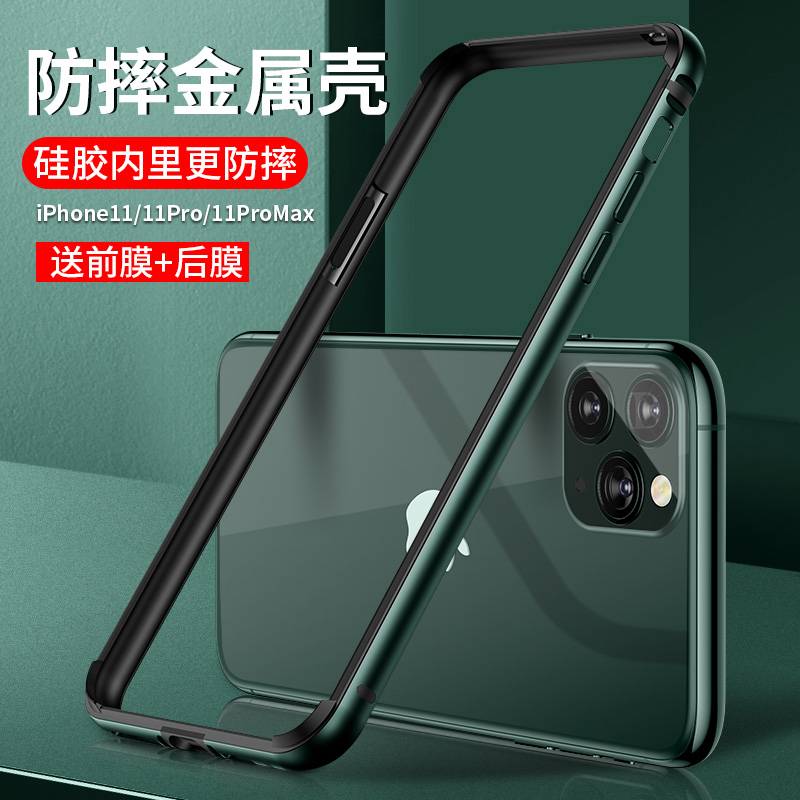 Metal rims iphone11 mobile phone protective shell rims Apple 11pro metal rims in frame dark night green 11promax silicone shell midframe ultra-thin apple 11 phone border shell full