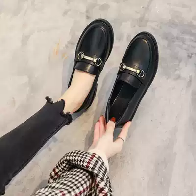 Le Fu shoes female English style small leather shoes thick heel middle heel bag shoes Net red Japanese series jk a pedal soft leather Korean version of all