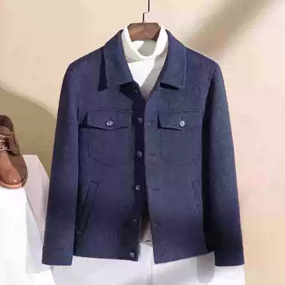 Hairy coat men's short double-sided woolen coat Albanka loose lapel alpaca coat Korean trend winter
