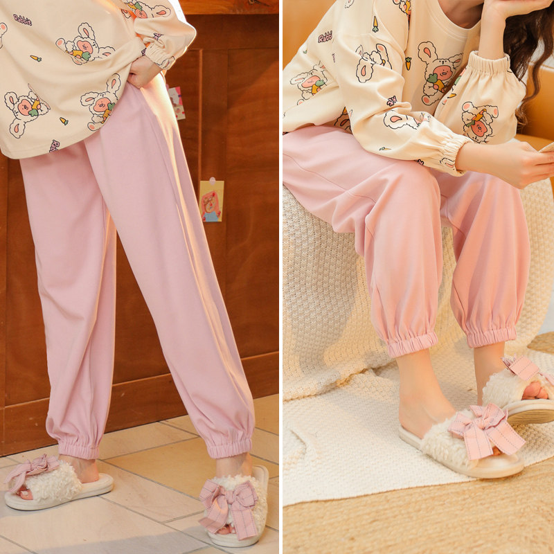 Finnten Flower Sleeping Pants Lady Long Pants Autumn Winter Pure Cotton Loose Casual Large Size Total Cotton Thin style Home Pants External Wear
