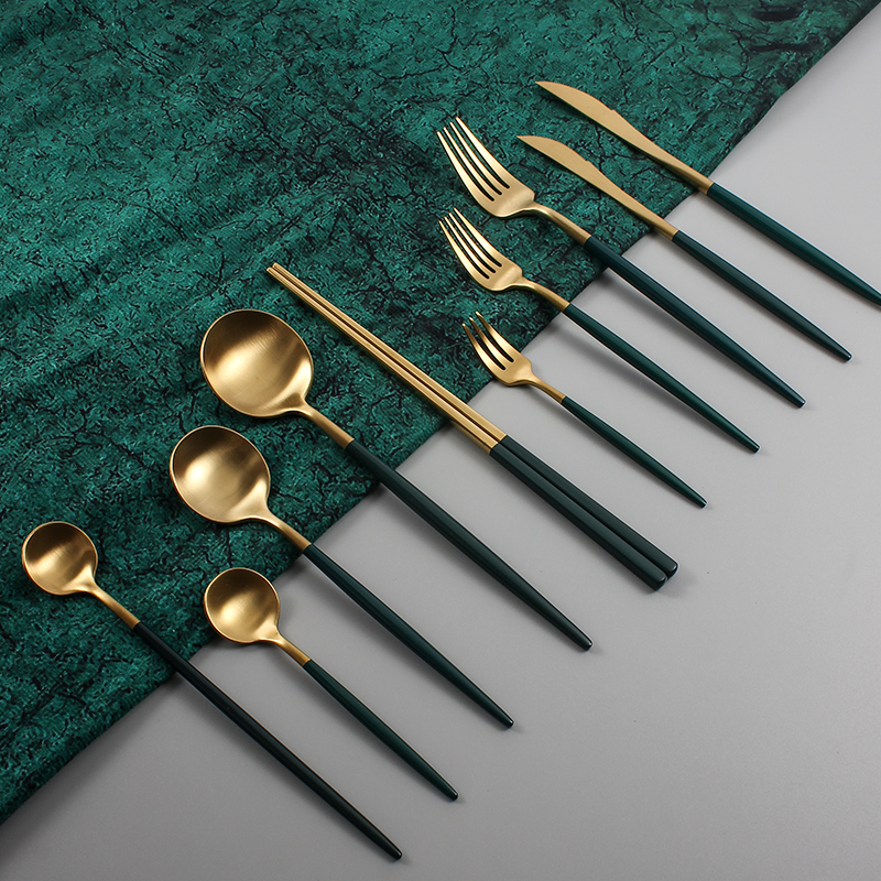 Ancestral green main dining knife Zum mother green main dining spoon Zum green main dining spoon Zum green sweet pitchforks Zum green chopsticks Zum green coffee spoon Zum green coffee spoon Zum green fruit fork Zum green ice spoon Zum mother green 2 pieces of grandmother