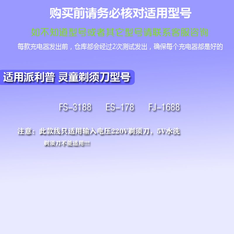 PAILIPU shaver charger ES178 LINGTONG soul boy FS3188 power cord accessories