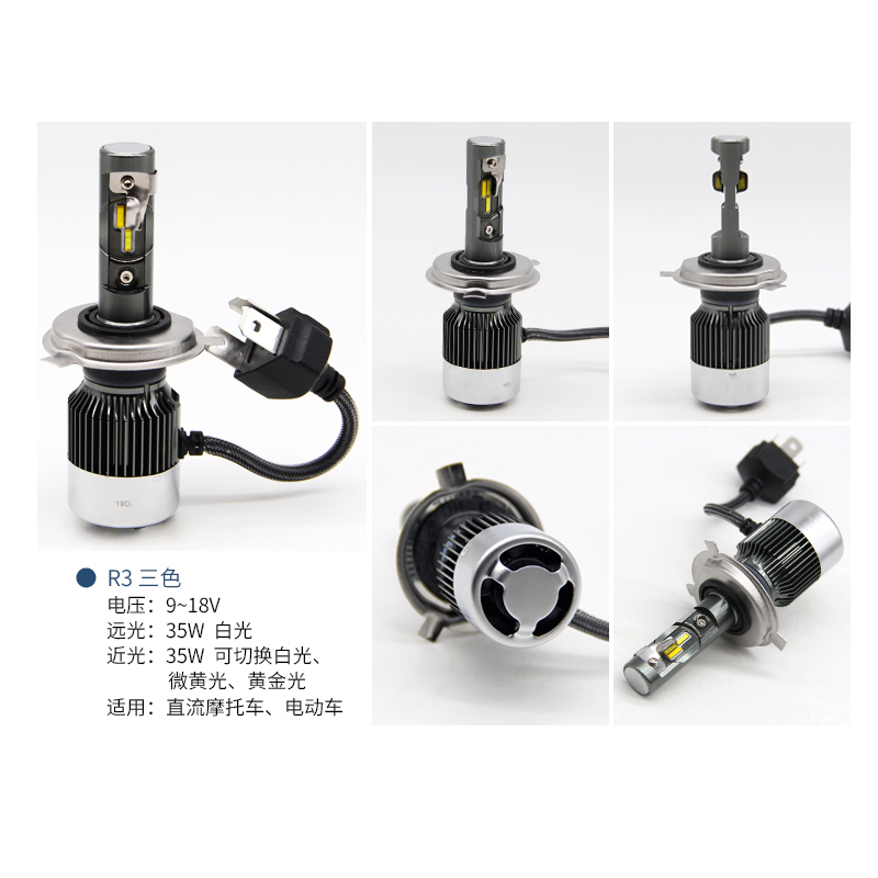 Stone bar locomotive light double claw three claw far and near light LED living room bulb H4 scooter super bright three-color white light yellow light