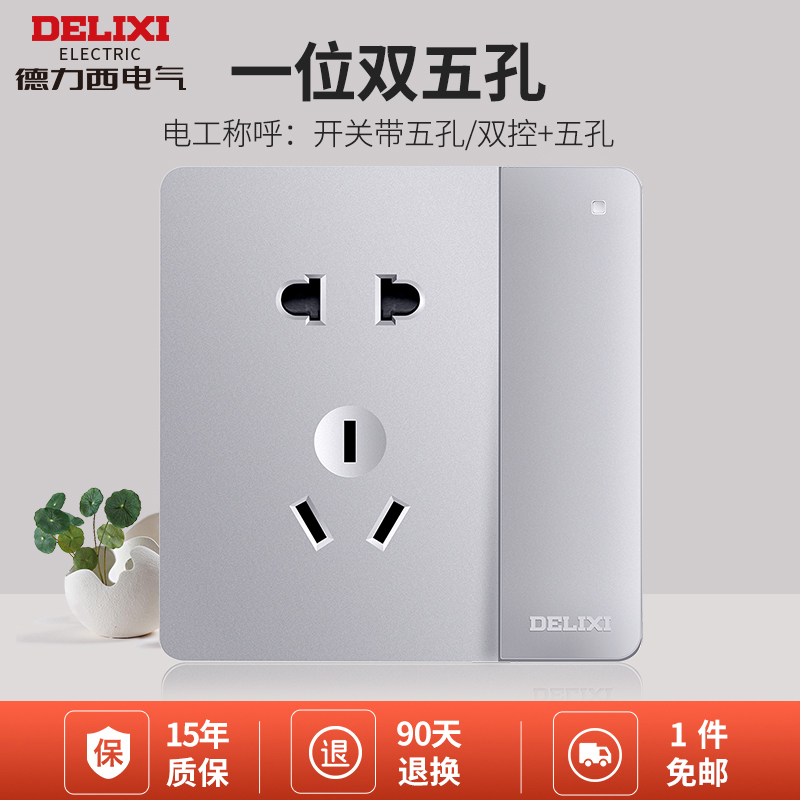 Delixi with switch socket panel 86 type silver 1 one open five holes double control single open 5 holes two or three plug hidden Gray