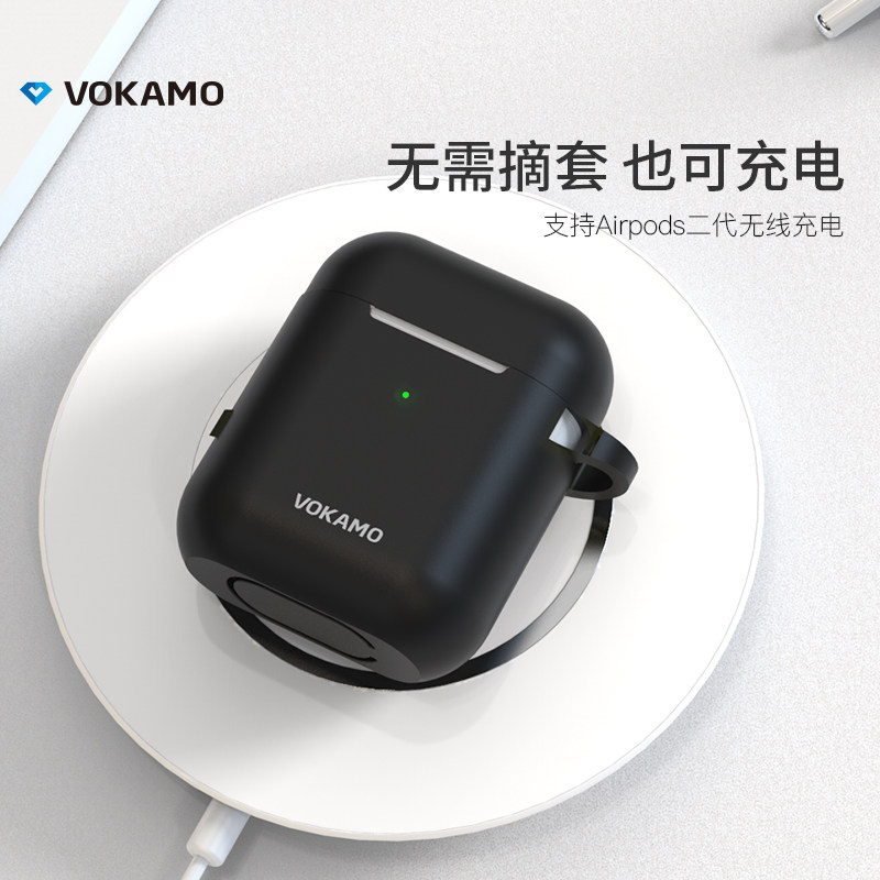 VOKAMO Wireless Bluetooth Headset Protection Case is suitable for Apple 2 generation AirPod Headset Box AirPods 2-generation Box Silicone Shell Silicone Shell Simple Shell Simple Loss Rope AirPods