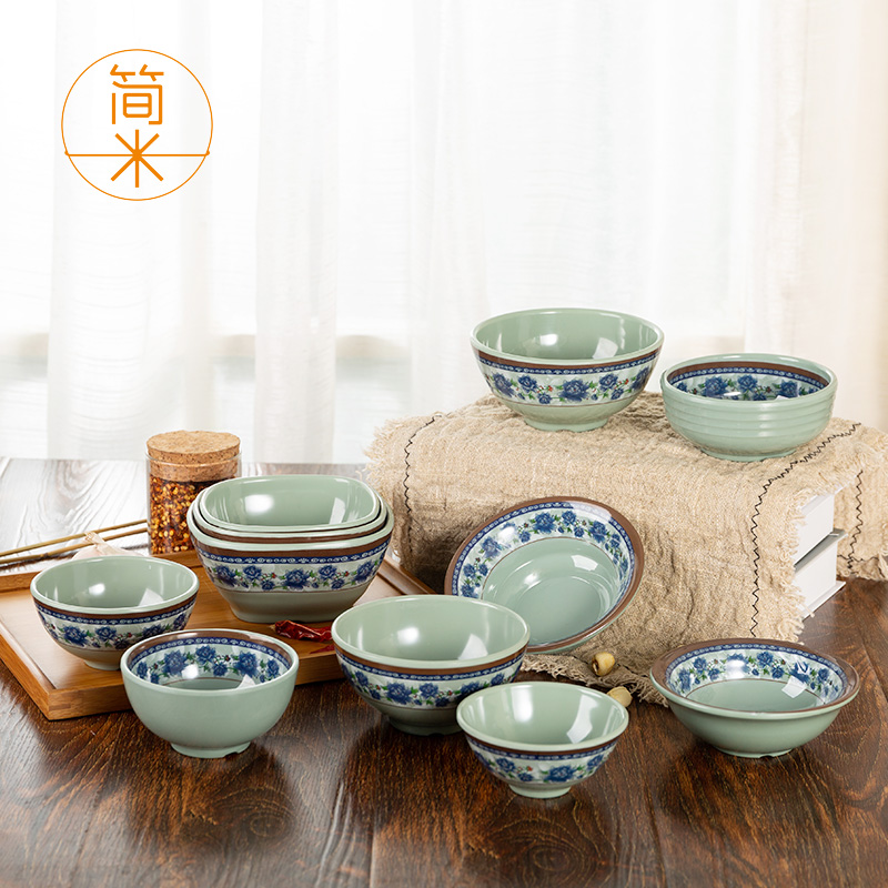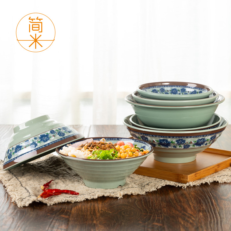 Blue and white melamine small bowl commercial hot pot bowl plastic fast food restaurant rice bowl instant noodle bowl anti-fall soup bowl 10 packs